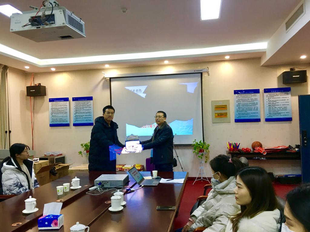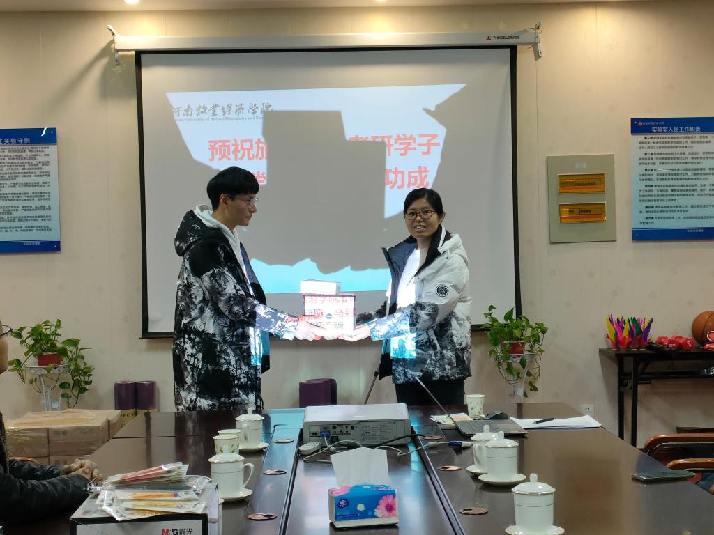 公司党委书记李喜民、副经理王中雨、教学办主任陈英为各位考研学子送上了精心准备的考研大礼包——战必胜的考试文具套装和精美的金色书签,祝愿所有考研同学得偿所愿、马到功成。