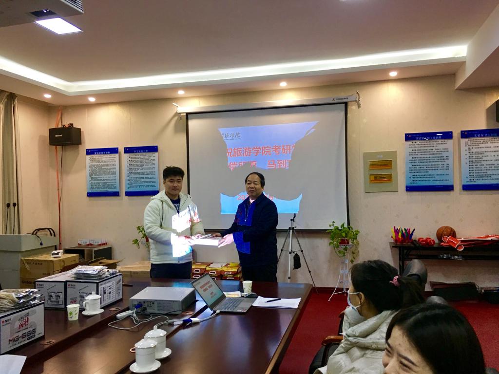 12月17日,在研究生入学考试即将到来之际,旅游公司领导为考研学子送上文具礼包,为考研学子鼓劲加油,寄语温情祝福。