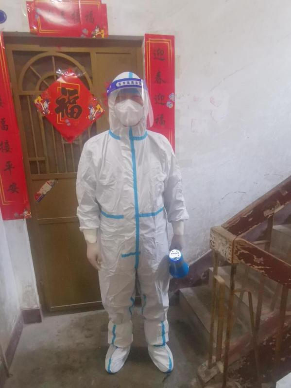 疫情开始以来,公司87岁的退休教师张盛华,儿子被隔离,他担心他们生活上有困难,心理上有负担,经常前去探望,虽然严严实实的防护服让老人已经认不出他是谁,但轻轻的一声问候,让老人从心底里高兴,脸上的笑容变得灿烂,阴霾一扫而去。